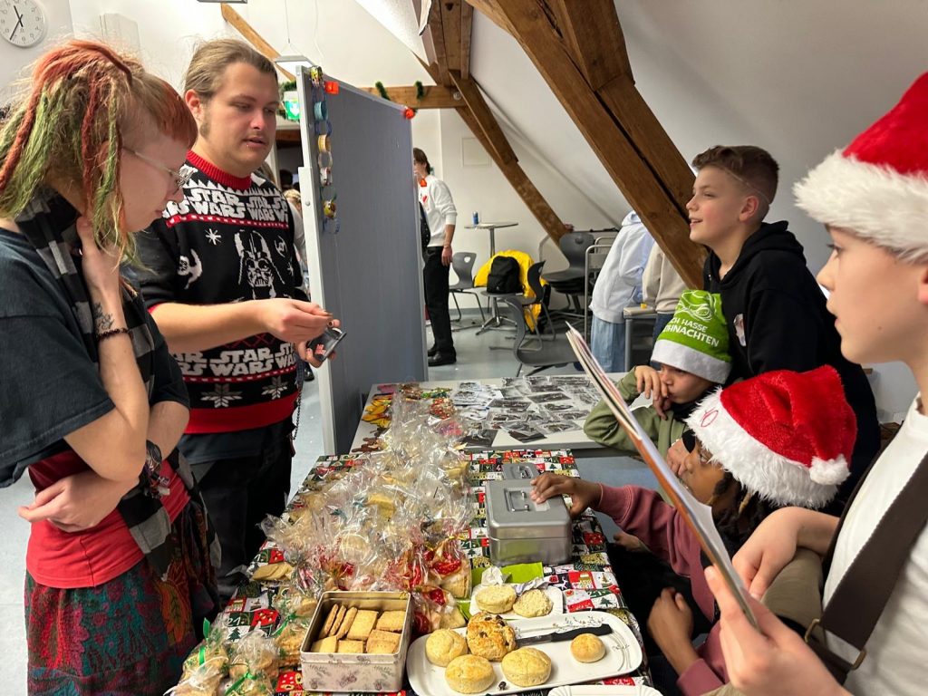 Das Schulhaus verwandelte sich in einen festlichen Weihnachtsmarkt, der mit liebevoll gestalteten Buden aufwartete. In diesem Jahr glänzten die Stände mit einer Vielzahl von Leckereien, kunstvollen Handarbeiten und spannenden, spielerischen Aktivitäten.