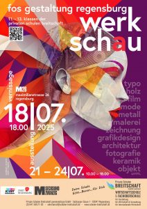 In der 12. Jahrgangsstufe lernen Schülerinnen und Schüler verschiedene Anwendungen des Kommunikations- und Mediendesigns kennen. Sie setzen sich mit Zeichen- und Schriftgestaltung auseinander, lernen moderne Gestaltungsansätze kennen und entwickeln ein Verständnis für die Platzierung von Text, Bildern und grafischen Elementen. In kreativen Projekten lernen sie professionelle Gestaltungsprogramme kennen und können eigene Layout-Konzepte umsetzen.